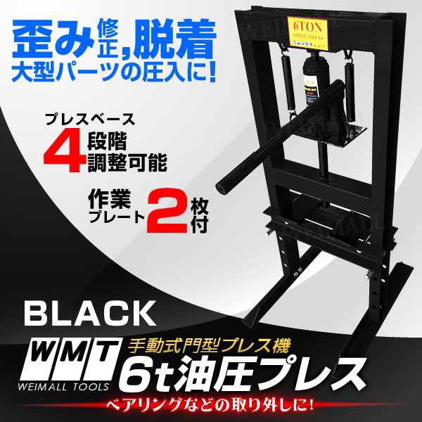油圧プレス ショッププレス 6トン 6t 門型プレス機 門型 プレス機 黒 自動車 バイク 手動 整備 黒 油圧式 口コミ 高評価