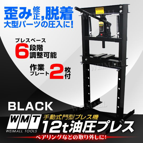 油圧プレス ショッププレス 12トン 12t 門型プレス機 門型 黒 自動車 バイク 整備 黒 工場 倉庫 ガレージ 作業場 口コミ 高評価 ランキング プレゼント
