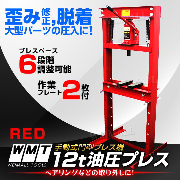 油圧プレス ショッププレス 12トン 12t 門型プレス機 門型 赤 自動車 バイク 整備 赤 口コミ 高評価 ランキング プレゼント