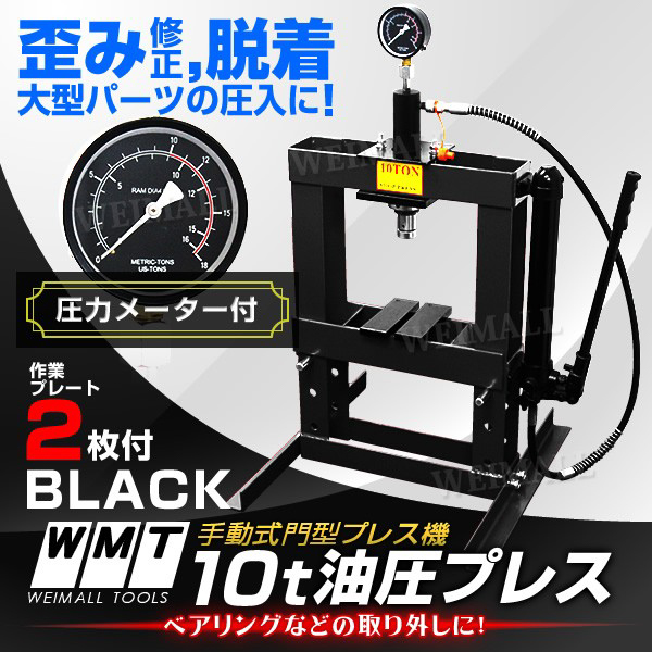 油圧プレス 門型油圧プレス機 10t 10トン 手動 卓上式 メーター付油圧プレス 黒 口コミ 高評価 ランキング プレゼント