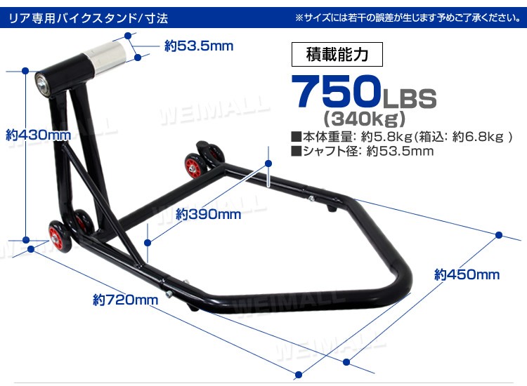 バイクスタンド リア BMW バイク専用 K1300 バイクリフト メンテナンススタンド 耐荷重750LBS リア用 口コミ 高評価