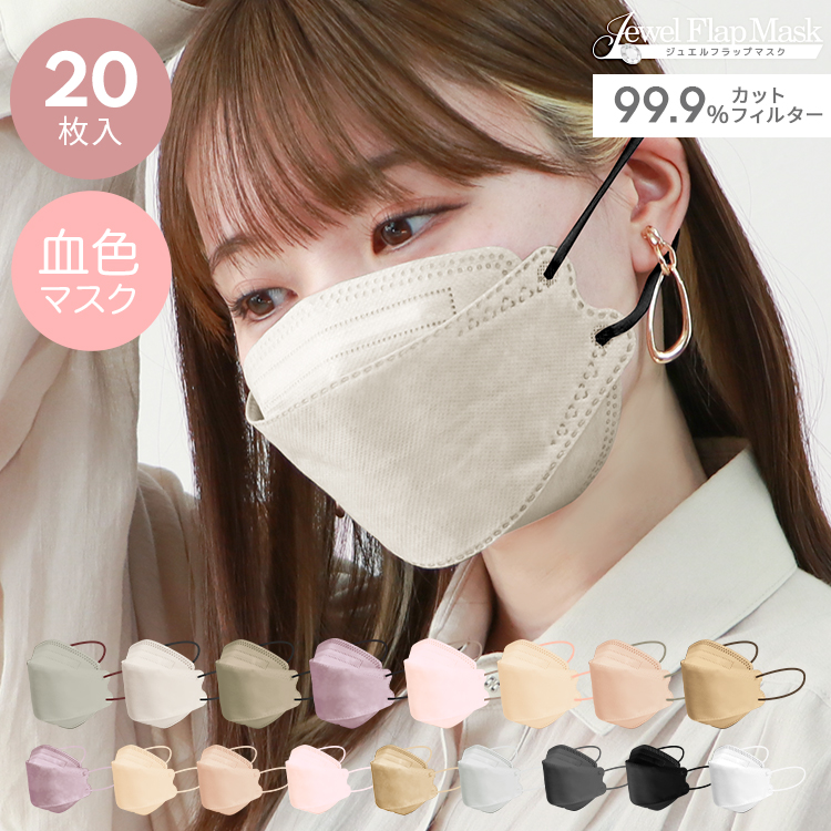 マスク 不織布 バイカラー 立体 カラーマスク くすみカラー 4層構造 平ゴム 小顔 小さめ ふつう 3サイズ 大人用 人気 ジュエルフラップマスク WEIMALL