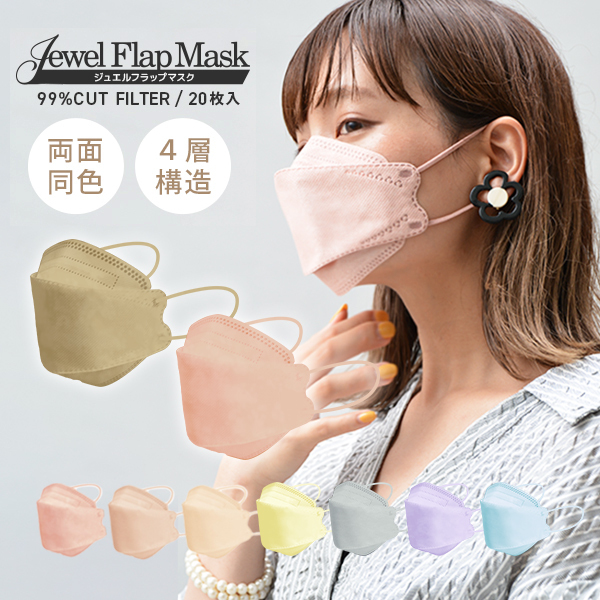 不織布マスク 立体 くすみカラー 血色カラー 両面同色 20枚 4層構造 平ゴム 小顔 小さめ ふつう 3サイズ 大人用 ジュエルフラップマスク WEIMALL