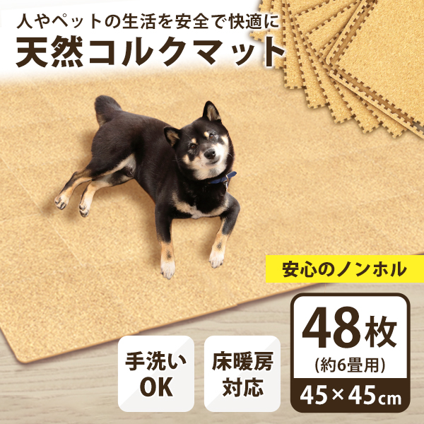 犬用 ペットマット 洗える コルクマット 大判 45cm 48枚 約6畳 ジョイントマット クッションマット 防音 床暖房対応 おしゃれ 犬 腰負担軽減に 安い