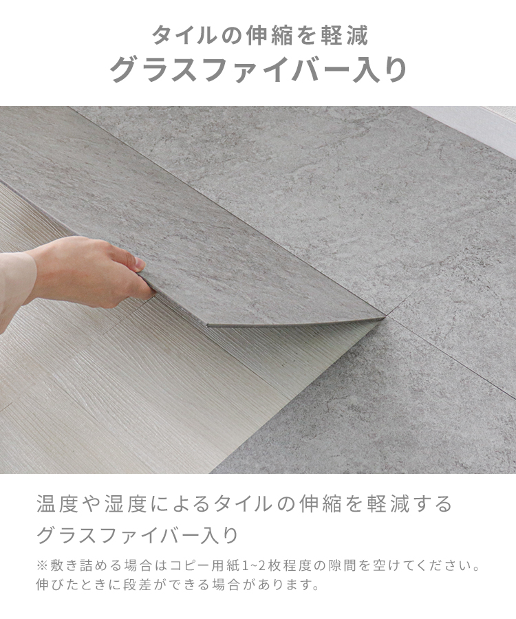さらに材料の中にはグラスファイバーが混ざっており、温度や湿度によるタイルの伸縮を軽減します!