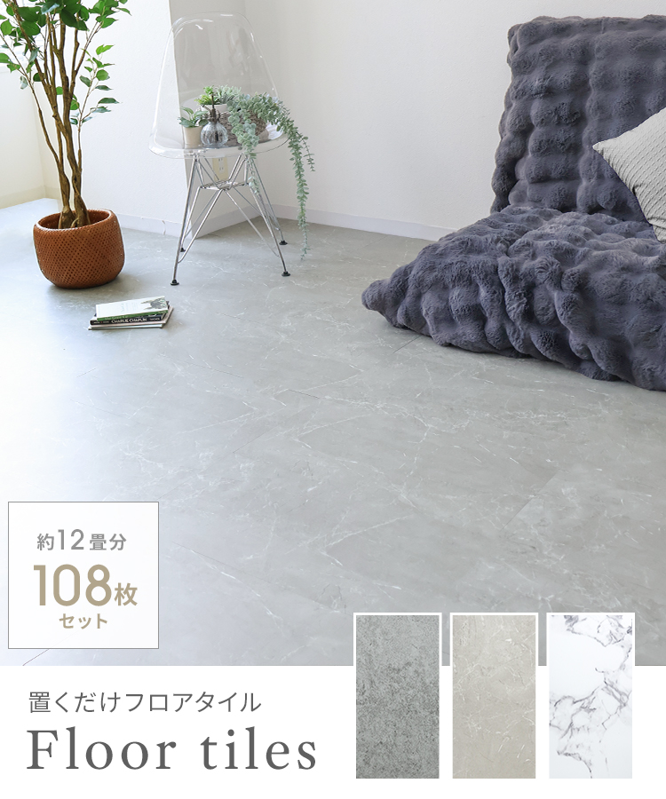 フロアタイル 置くだけ フローリング マット 床材 12畳 大理石 108枚 タイルマット 床タイル タイルカーペット リメイクシート