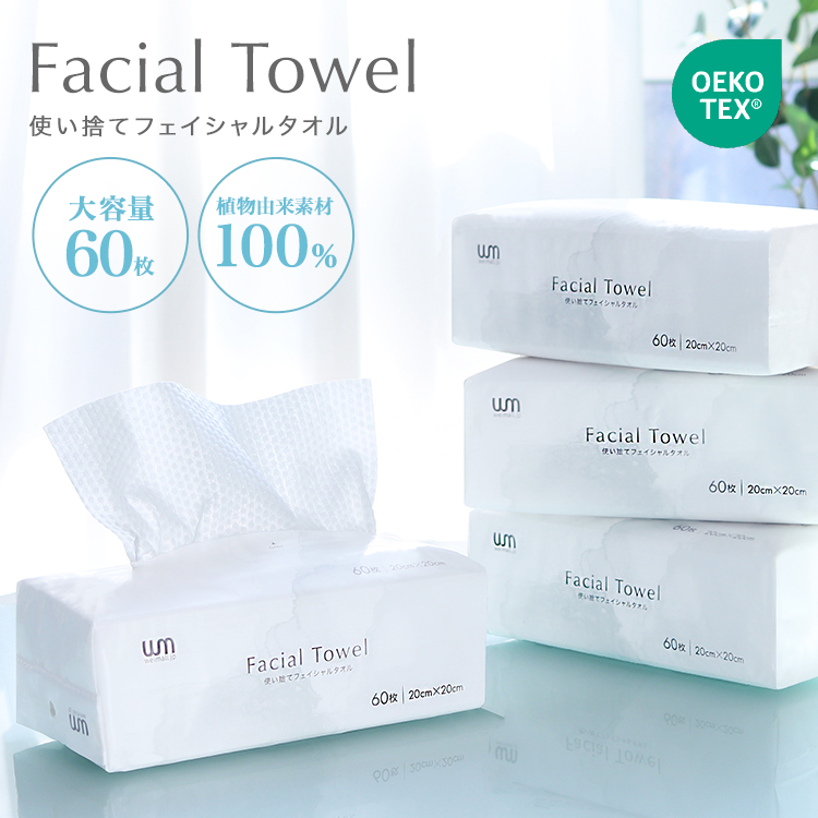 クレンジングタオル フェイシャルタオル フェイスタオル 使い捨て 60枚 4個セット 洗顔タオル 化粧 メイク落とし 敏感肌 ペーパータオル 手拭き