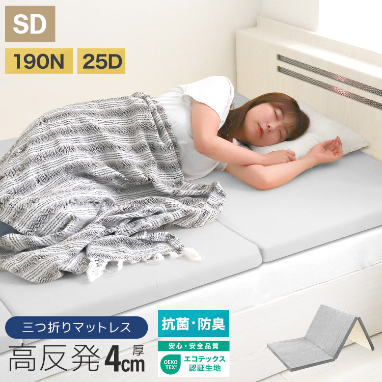 マットレス セミダブル 高反発マットレス 三つ折り 折りたたみマットレス 腰痛 シングルマットレス ベッドマットレス 4cm