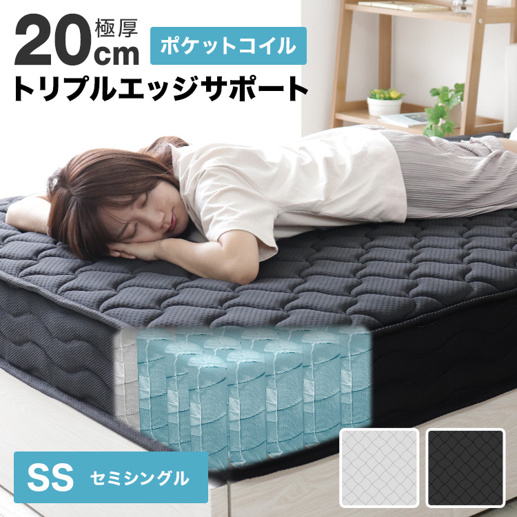 マットレス シングル ポケットコイルマットレス エッジサポート 硬め スプリングマットレス マット ベッドマットレス 極厚20cm ポケットコイル