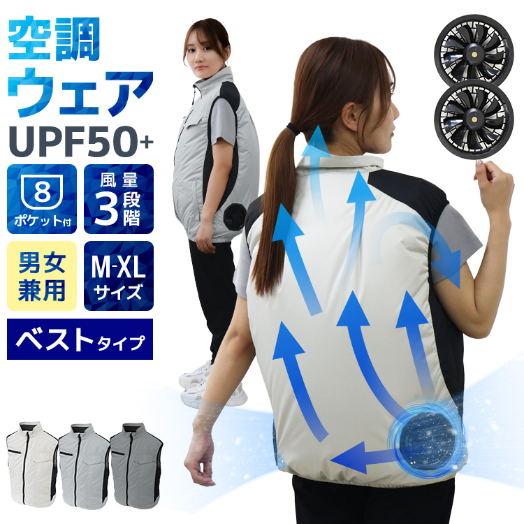 空調作業服 ベスト ファン付きウェア 2025 大風量 最大7500rpm 3段階風量調節 強風 UVカット 保冷剤ポケット 作業服 扇風機 夏用 S-2XL メンズ レディース 冷却