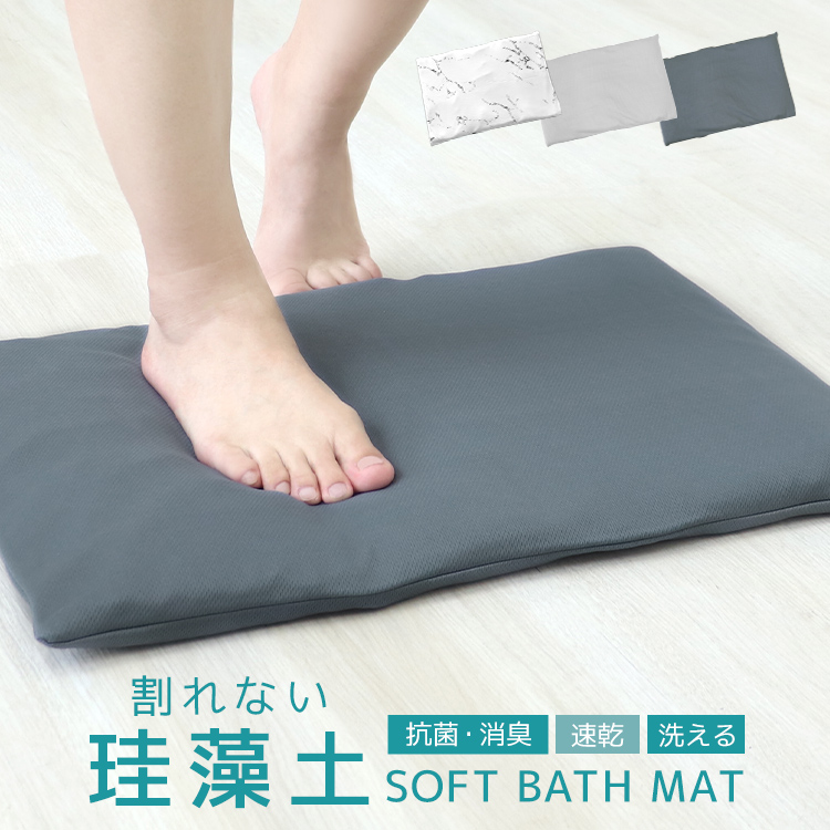 珪藻土マット ソフト 珪藻土バスマット 柔らかい 割れない 54×34cm 洗えるカバー 大判 抗菌 消臭 速乾 お風呂マット バスグッズ