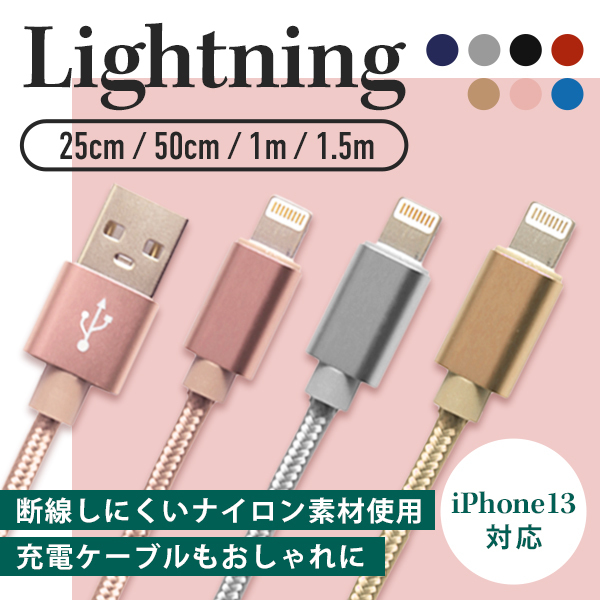 充電ケーブル ライトニングケーブル iPhone 25cm 50cm 1m 1.5m 急速 断線防止 iPad 充電器 コード データ転送 USB 短い 長い カラー 豊富 おしゃれ かわいい