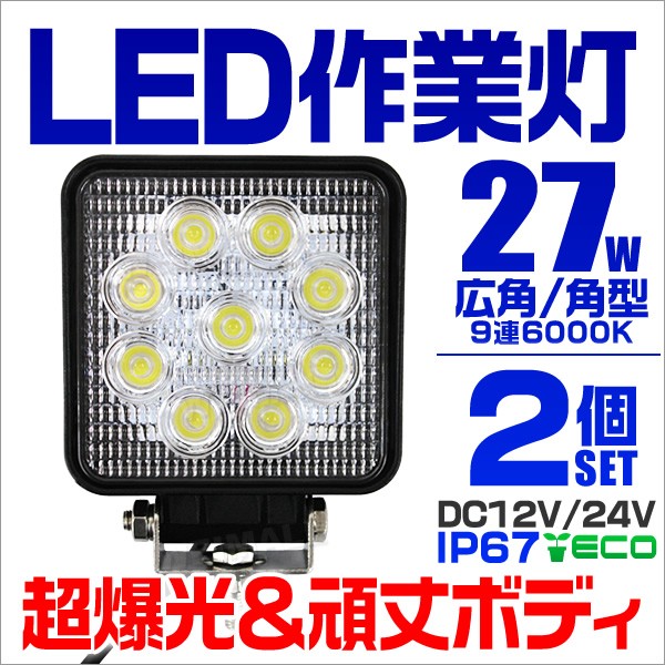 LEDワークライト デッキライト 27W 12V 24V 対応 投光器 作業灯 集魚灯 広角 防水 防犯 角型 2台セット 口コミ 高評価 便利 外灯
