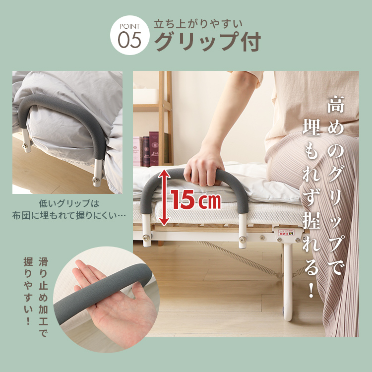 高めのグリップ&滑り止め加工で立ち上がりやすい!