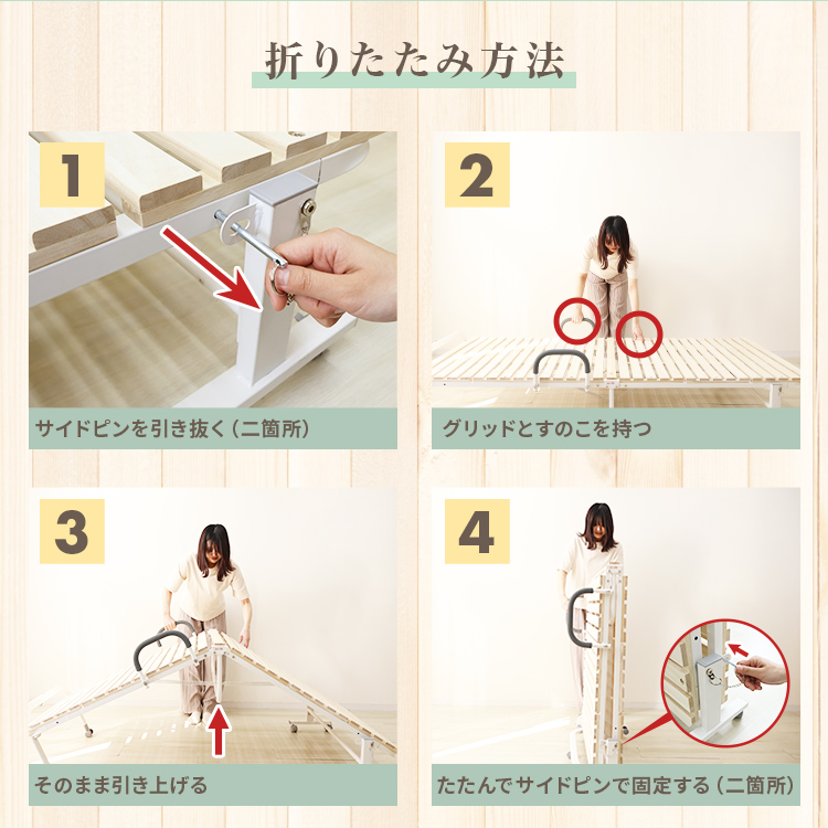 すのこは面取り加工で、布団の引っかかりや怪我のリスクを軽減。