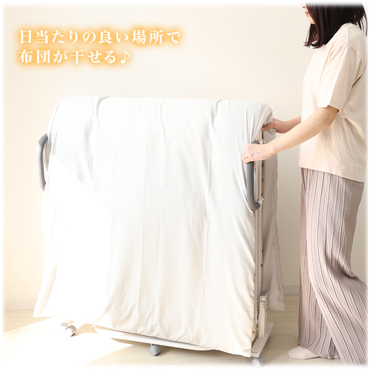 布団をかけたまま、日当たりの良い場所へ移動させて簡単に布団を干せます。