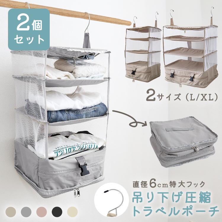トラベルポーチ 吊り下げ 圧縮 2点セット おしゃれ 旅行用ポーチ 収納ポーチ 軽量 仕分け 旅行 出張 ファスナー コンパクト 簡単収納 パッキング 旅行用圧縮袋