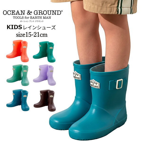 キッズ レインシューズ 雨靴 長靴 男の子 女の子 Ocean&Ground オーシャンアンドグラウンド レインシューズ 15cm-21cm リフレクター付き