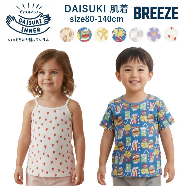 超目玉 セール 770円⇒550円 DAISUKIシリーズ 初インナー 肌着 キッズ キャミソール タンクトップ 下着 綿100% 男の子 女の子 ブリーズ BREEZE 70cm-140cm