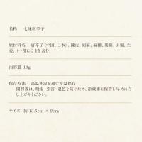 蕃椒(バンショウ・唐辛子)に、白薑(ビャクキョウ・生姜)、紫蘇、山椒、陳皮(チンピ)、胡麻、麻種(オタネ)を薬味として加えたものです。<br />