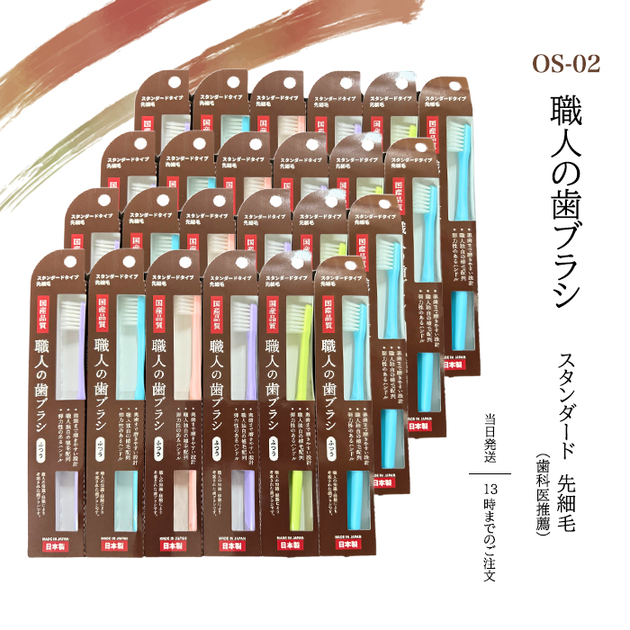 ライフレンジ 職人の歯ブラシ 歯ブラシ職人 田辺重吉考案 スタンダード OS-02 24本セット 先細毛 磨きやすい 奥まで届く 国産 安心