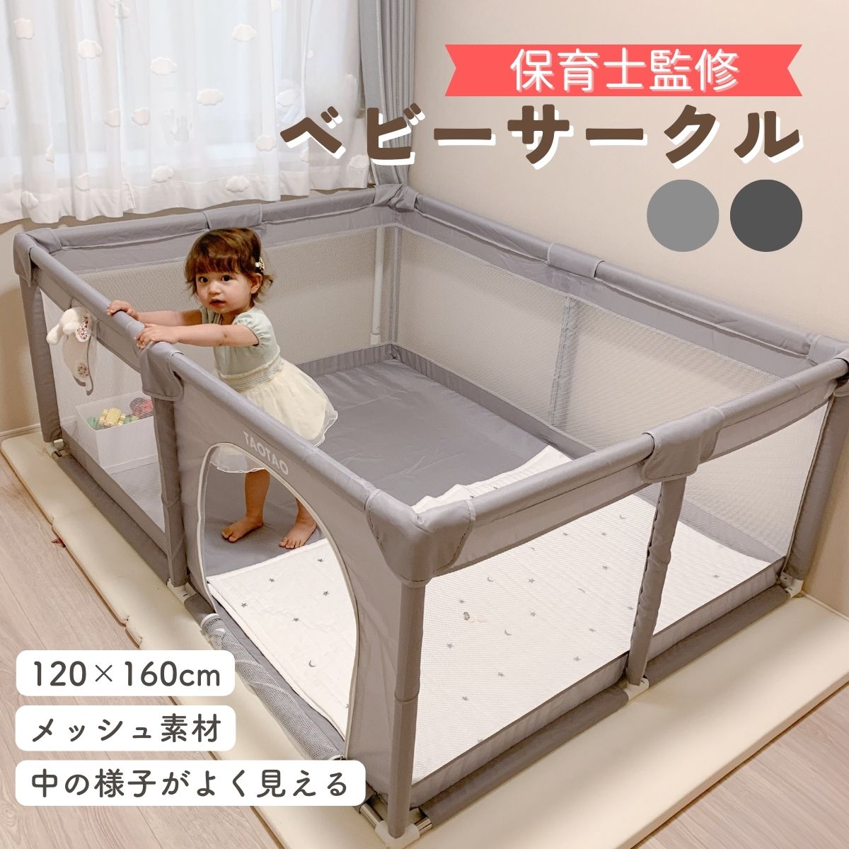 【保育士監修】ベビーサークル 赤ちゃん メッシュ ベビーフェンス 1ドア 2ドア 120cm×160cm TAOTAO