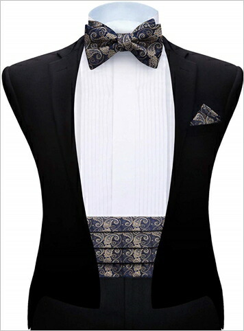 □手結び蝶ネクタイ・ポケットチーフ・カマーバンドの3点セット