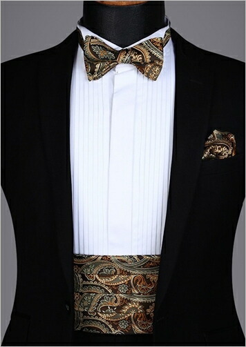 □手結び蝶ネクタイ・ポケットチーフ・カマーバンドの3点セット