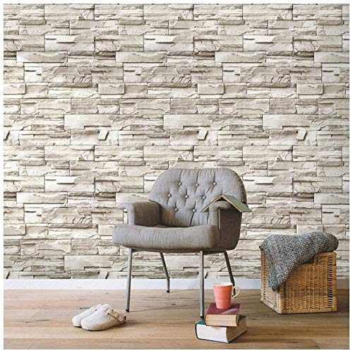 EASYLEE 壁紙シール 45cm×10m リメイクシート 石目調 ストーン ライトグレー3D
