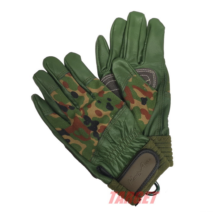 陸上自衛隊 迷彩 タクティカルグローブ 牛本革 耐摩擦 カラビナ対応モデル(ヒメジグローブ コンビ手袋 コンバット 作業用グローブ カモフラ 迷彩柄)
