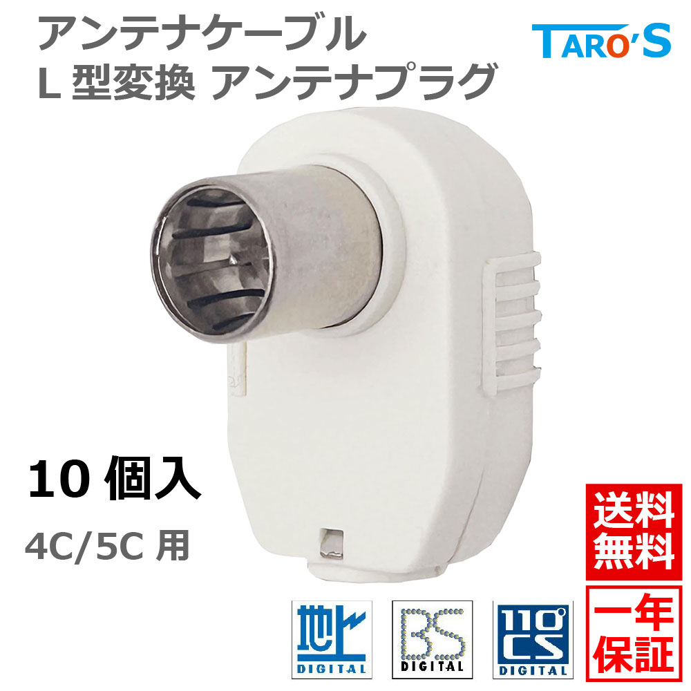 テレビ アンテナプラグ L型 アダプタ 差し込みタイプ【10個入り】 ホワイト 4C/5C 兼用 タローズ TARO'S 4CFB-APAD-10P 送料無料