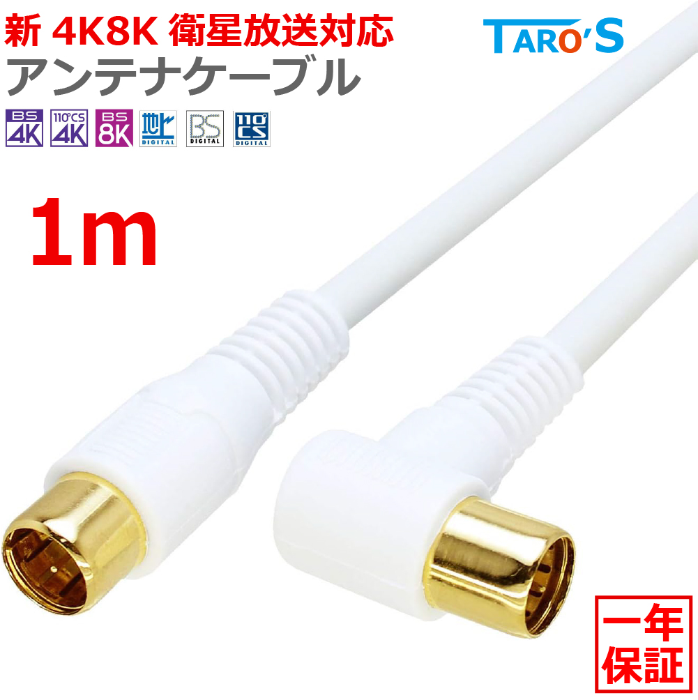 アンテナケーブル 1m 同軸 S-4C-FB L型 - ストレート型 4K 8K対応 テレビ アンテナ TV 配線 BS CS CATV 地デジ 衛星放送 4CFB-LS1WH ホワイト 白