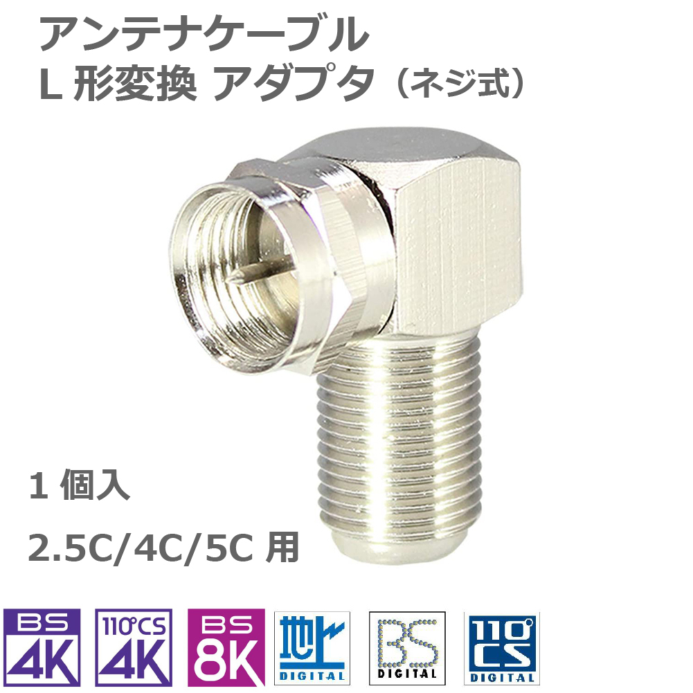 アンテナケーブル L型 変換 アダプタ コネクタ プラグ ネジ式 4K 8K対応 1個入 テレビ 配線 BS CS CATV 地デジ 衛星放送 4CFB-LSAD