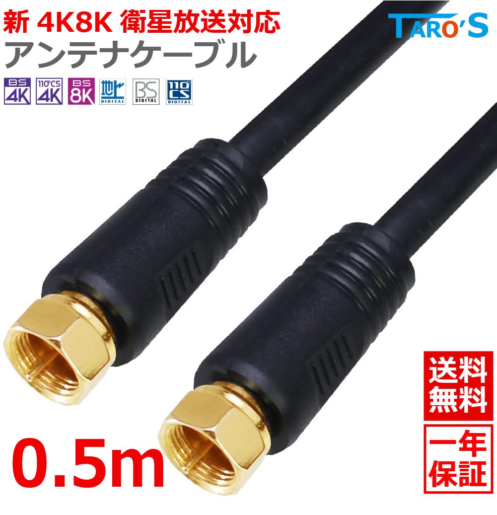 アンテナケーブル 50cm 同軸 S-4C-FB F型(ネジ型) - F型(ネジ型) 延長 4K 8K対応 テレビアンテナ コード 線 BS CS CATV 地デジ 4CFF-005BK ブラック 黒 送料無料
