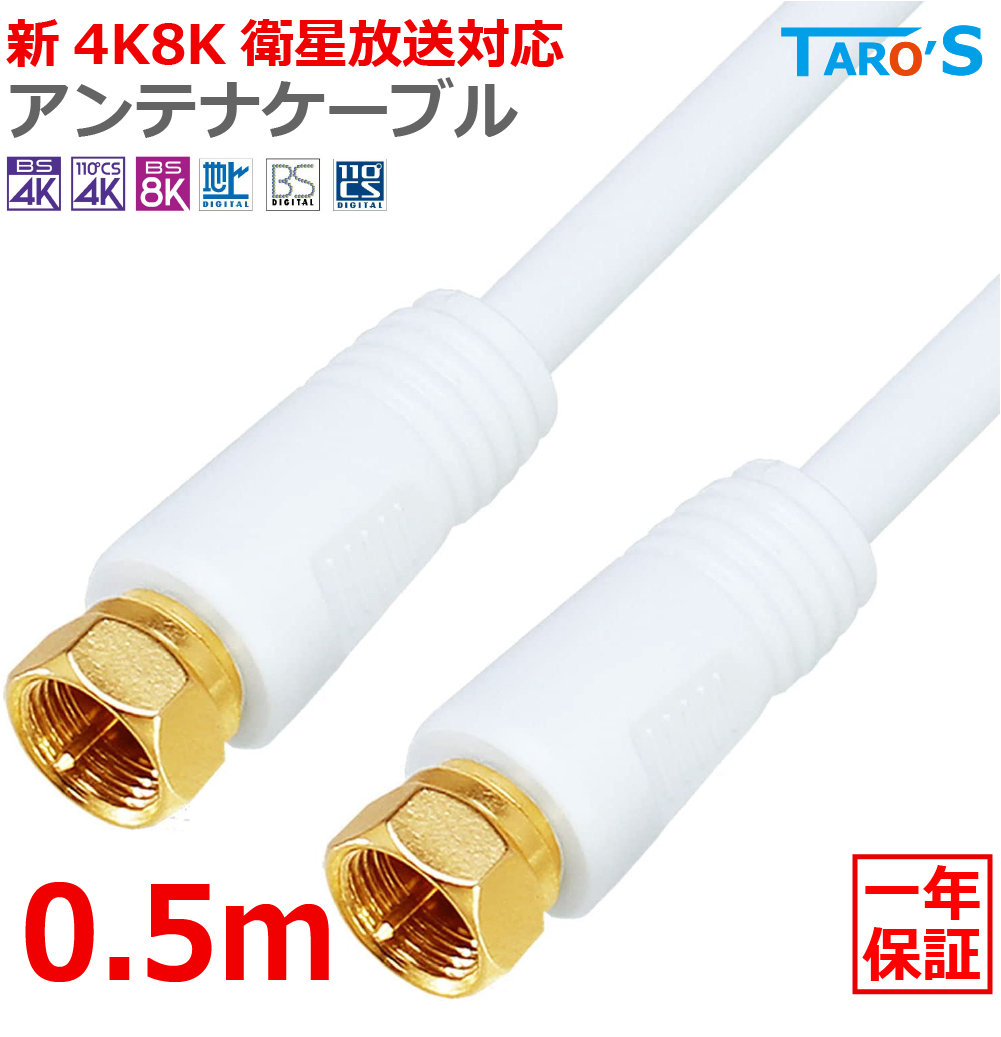 アンテナケーブル 50cm 0.5m 同軸 S-4C-FB F型(ネジ型) - F型(ネジ型) 延長 4K 8K対応 テレビアンテナ コード 線 BS CS CATV 地デジ 4CFF-005WH ホワイト 白