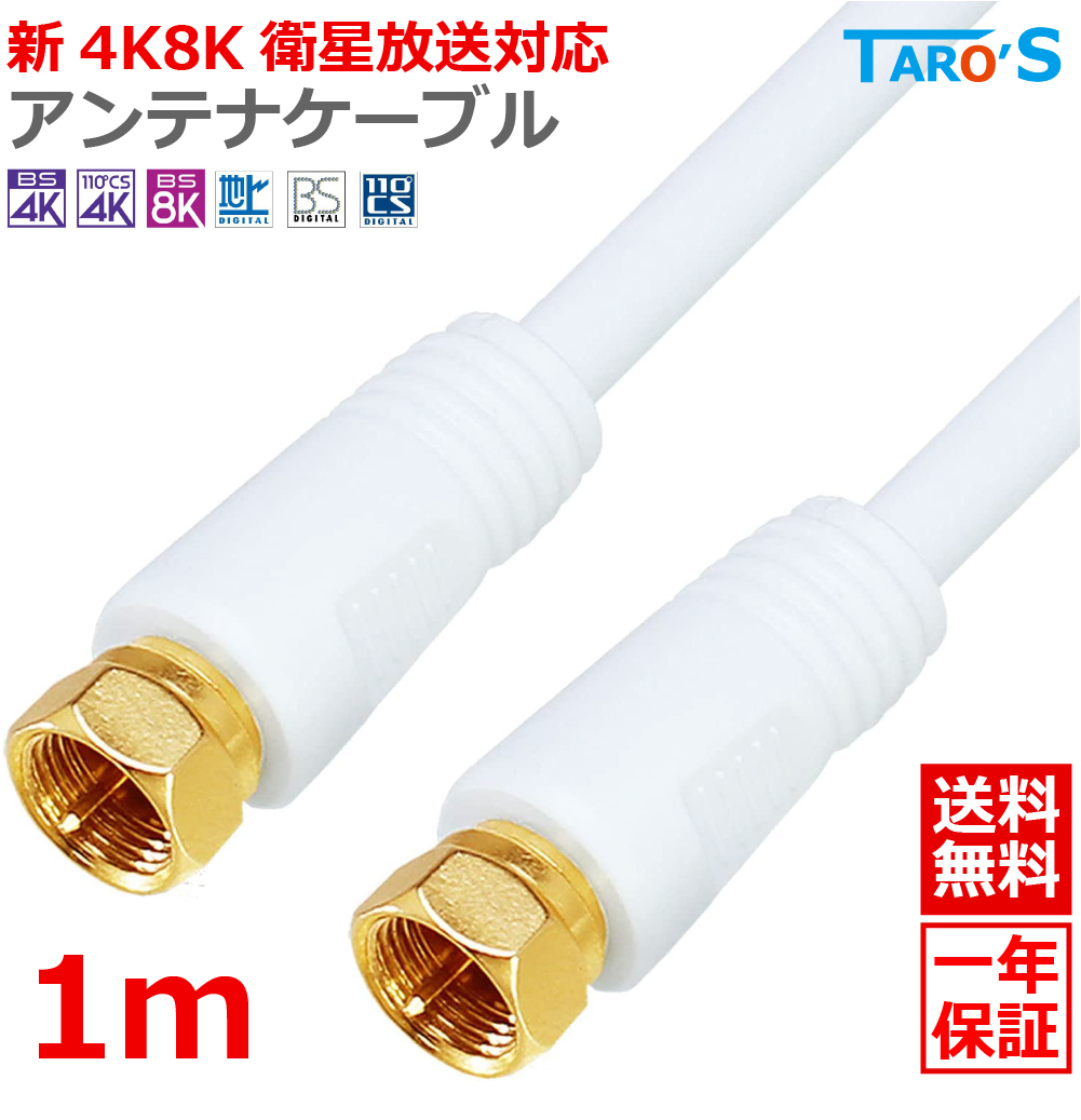 アンテナケーブル 1m 同軸 S-4C-FB F型(ネジ式) - F型(ネジ式) 延長 4K 8K対応 テレビアンテナ コード 線 BS CS CATV 地デジ 4CFF-01WH ホワイト 白 送料無料