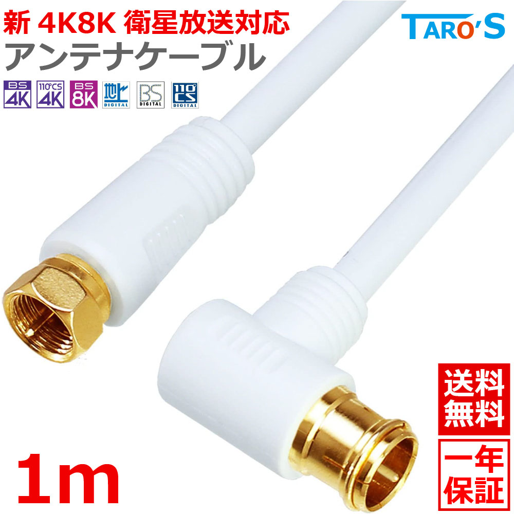 アンテナケーブル 1m 同軸 S-4C-FB L型 - F型(ネジ式) 4K 8K対応 テレビアンテナ コード 線 BS CS CATV 地デジ 4CLF-01WH ホワイト 白 送料無料