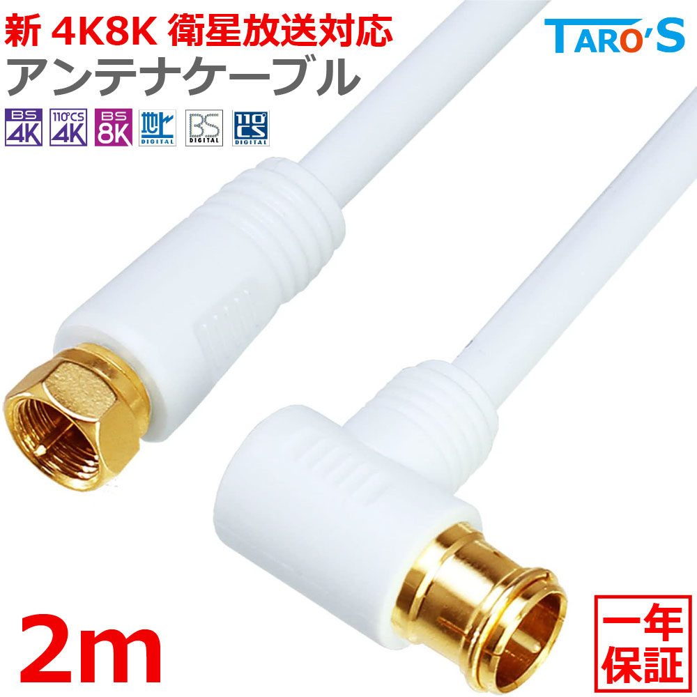 アンテナケーブル 2m 同軸 S-4C-FB L型 - F型(ネジ式) 4K 8K対応 テレビアンテナ コード 線 BS CS CATV 地デジ 4CLF-02WH ホワイト 白