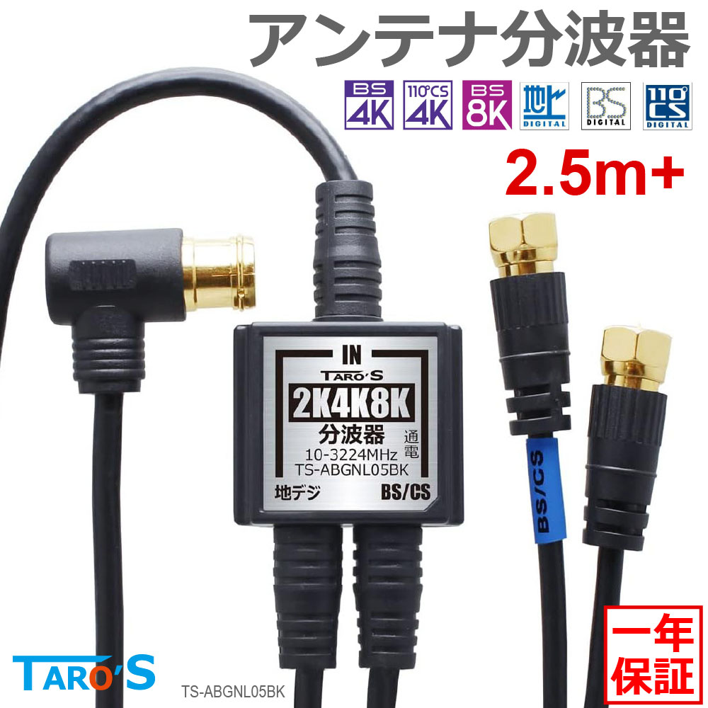 壁面(アンテナ口)からTVまで、これ1本で簡単接続!・4K8K対応!地デジ(地上デジタル)アンテナとBS・CSアンテナの混合器、