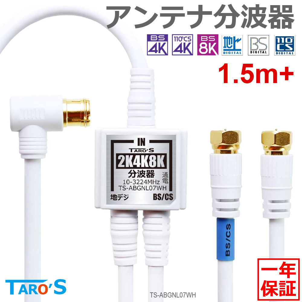 壁面(アンテナ口)からTVまで、これ1本で簡単接続!・4K8K対応!地デジ(地上デジタル)アンテナとBS・CSアンテナの混合器、
