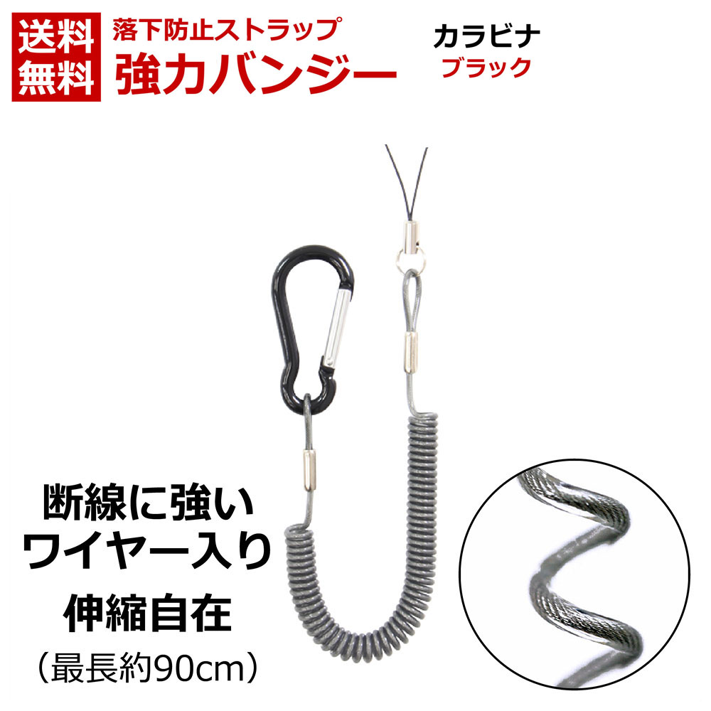 携帯ストラップ 強力バンジーストラップ カラビナタイプ MDK-W-BK ブラック 落下防止/盗難防止/紛失防止/スマートフォン/カギ/定期入れ 送料無料 藤本電業