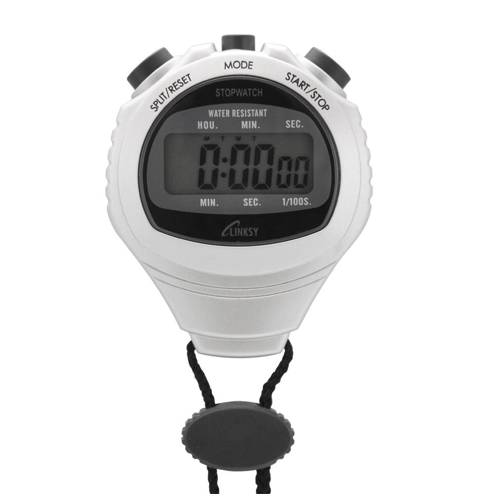 リンクシー ストップウォッチ シルバー LS001S 1/100秒計 スプリット ディアル 時計 アラーム カレンダー 防滴 雨天 陸上 水泳 ストラップ付き LINKSY 送料無料