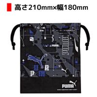 幾何学模様のPUMAのロゴ入り巾着袋。