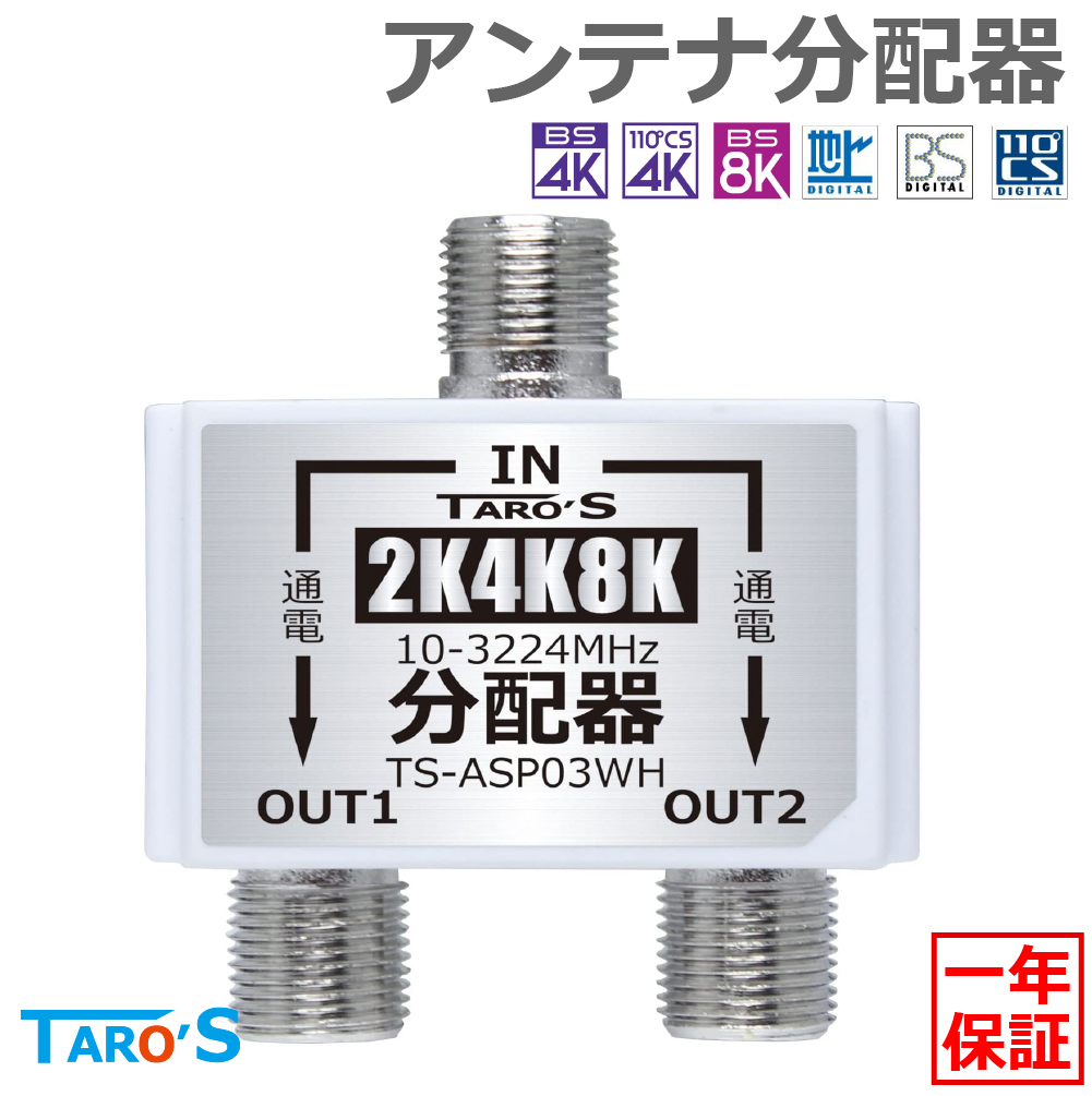 テレビアンテナ分配器 2分配 2K 4K 8K 地デジ BS CS CATV 対応 全端子電流通過型 ホワイト TS-ASP03WH