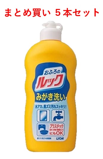 ●内容量400g×5本●特長浴室や蛇口、洗面台まわりの落としにくい「水アカ汚れ」を落とし、ピカピカにします浴槽の「黒ズミ」や排水口などの「ヌメリ」もすっきり落とします材質に傷がつきにくい、ザラザラしない“超ミクロ粒子”の研磨成分10ミクロン以下の超ミクロ粒子を採用していますので、浴室の材質を傷つけず、安心して使用できます。さわやかな気分でおそうじができるシトラスハーブの香りを採用●使用上の注意用途外に使わない。乳幼児の手の届くところに置かない。認知症の方などの誤飲を防ぐため、置き場所に注意する。研磨剤入りスポンジ、ナイロン・金属タワシなどの硬い道具を使うと傷がつくことがある。プラスチックや人工大理石等は、強くこすると傷がついたり光沢がなくなることがあるので、目立たないところで試すか、メーカーの取扱説明書を参照する。荒れ性の方や長時間使用する場合は炊事用手袋をはめる。使用後は手を水でよく洗う。●成分水、アルミナ系鉱物、炭酸カルシウム系鉱物、脂肪酸アルカノールアミド、直鎖アルキルベンゼンスルホン酸ナトリウム、エチレングリコール、クエン酸ナトリウム、香料、クエン酸、防腐剤