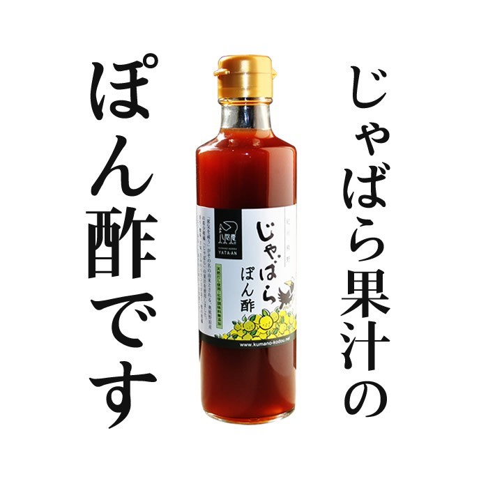 和歌山県北山村名産の希少柑橘「じゃばら」そのじゃばらの果汁を主原料にし、天然の素材からダシをとり、丁寧に 仕上げた無添加のぽん酢です。