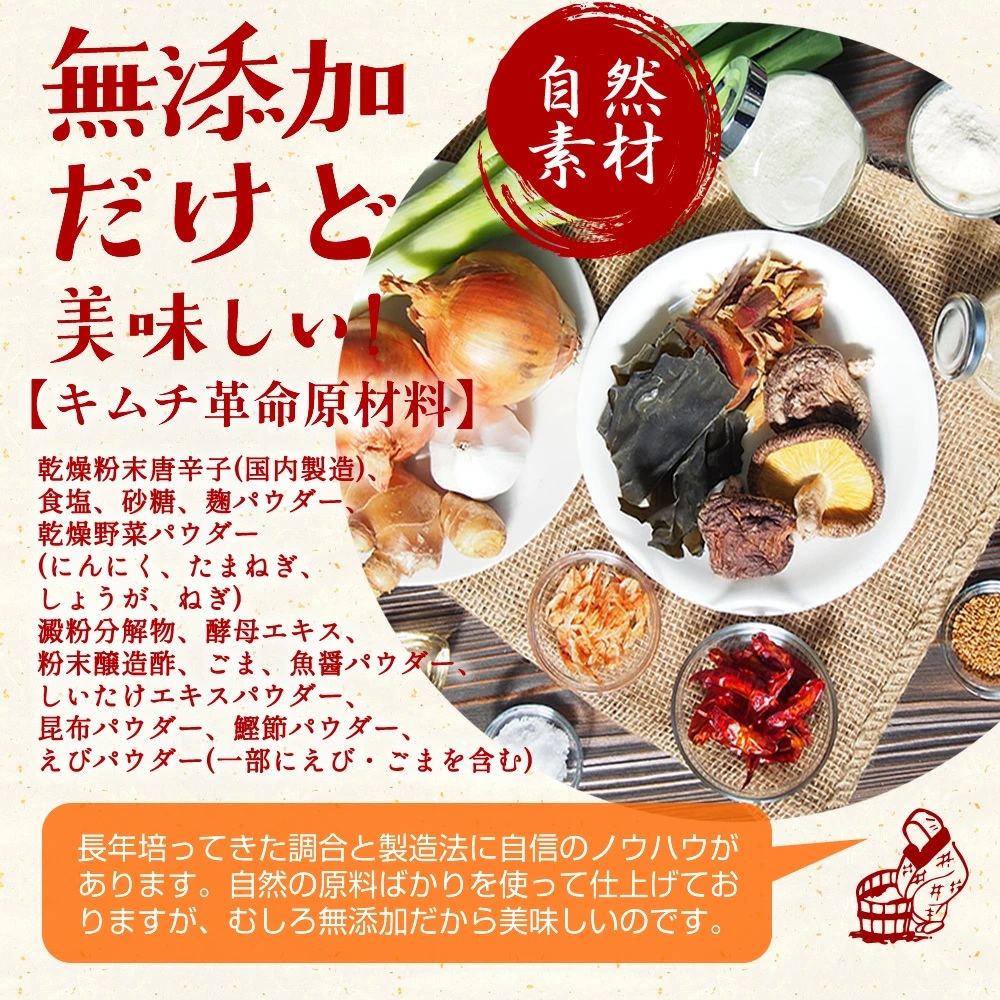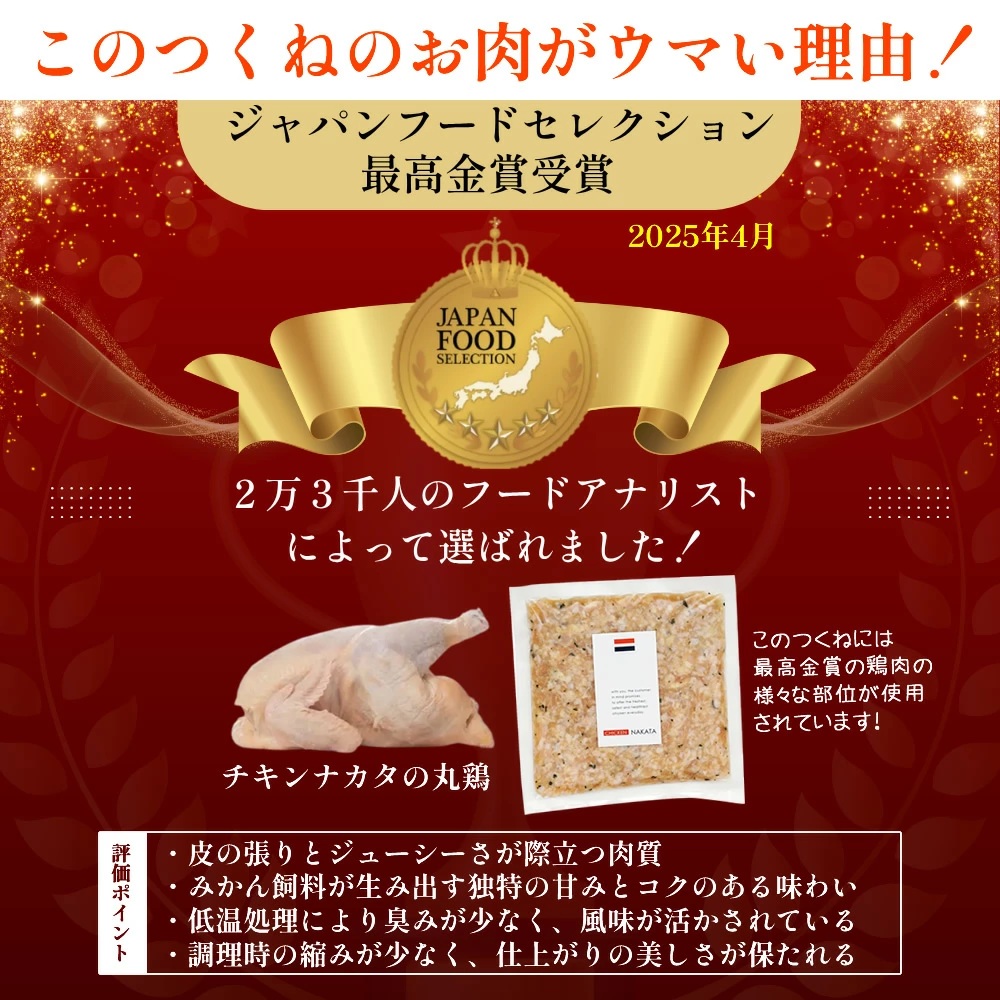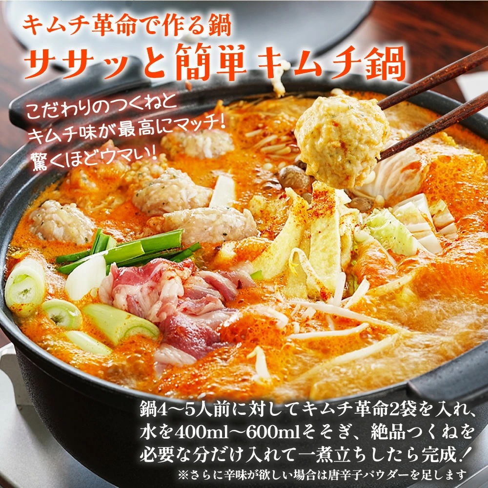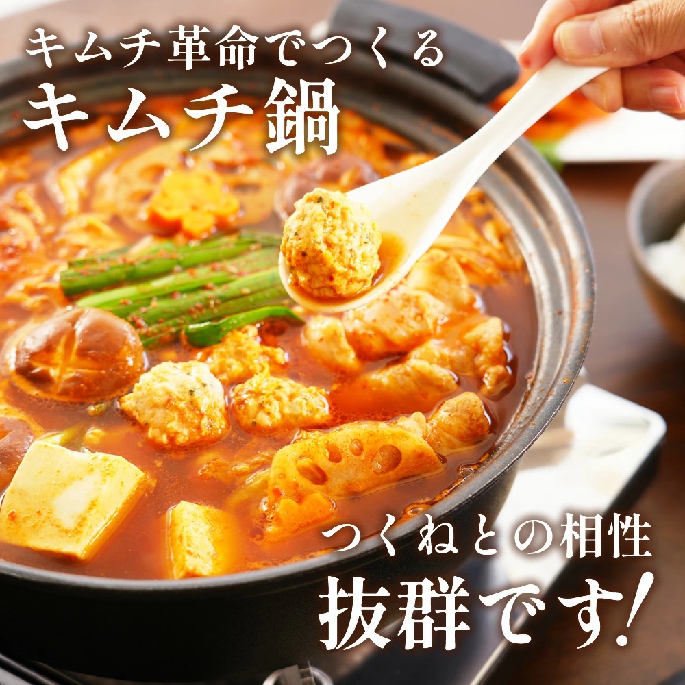 | 原材料 | つくね:鶏ムネ肉(和歌山県産)、鶏皮、鶏軟骨、大葉、卵、塩コショウ キムチ革命:乾燥粉末唐辛子(国内製造)、食塩、砂糖、麹パウダー、乾燥野菜パウダー(にんにく、たまねぎ、しょうが、ねぎ)澱粉分解物、酵母エキス、粉末醸造酢、ごま、魚醤パウダー、しいたけエキスパウダー、昆布パウダー、鰹節パウダー、えびパウダー(一部にえび・ごまを含む) 唐辛子パウダー:唐辛子(韓国産) |
