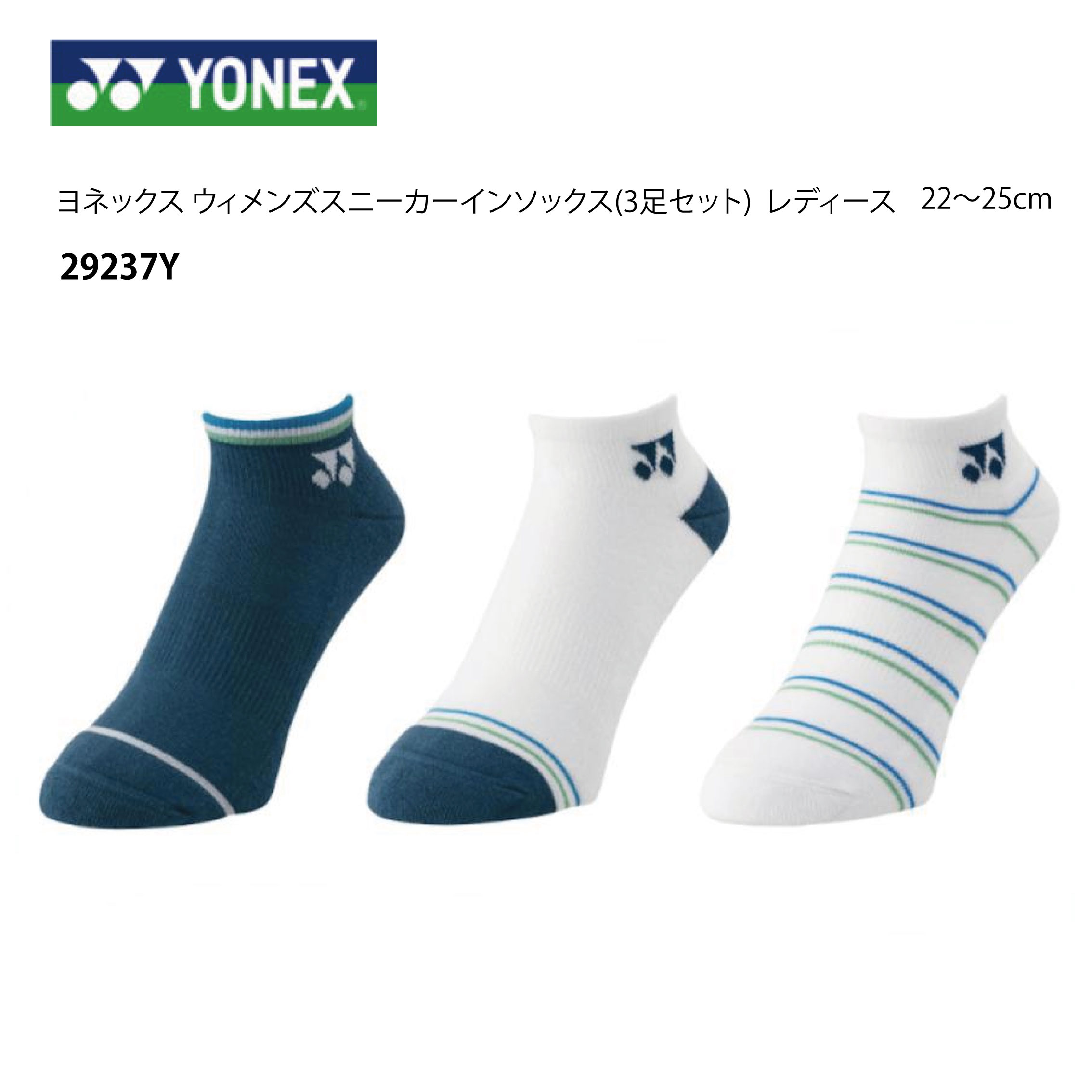 YONEX ウィメンズ スニーカーインソックス 3P 品番 29237Y 『ポスト投函対応商品(1/2)』 レディース3足組 (22〜25cm)