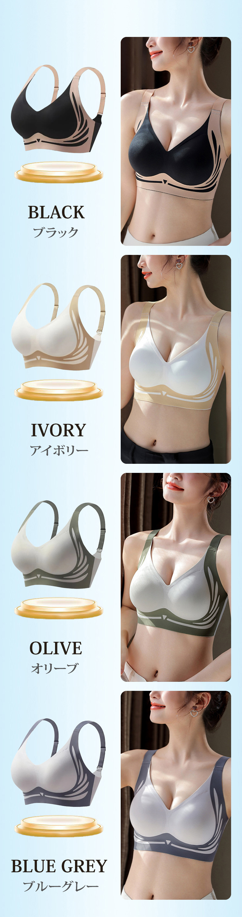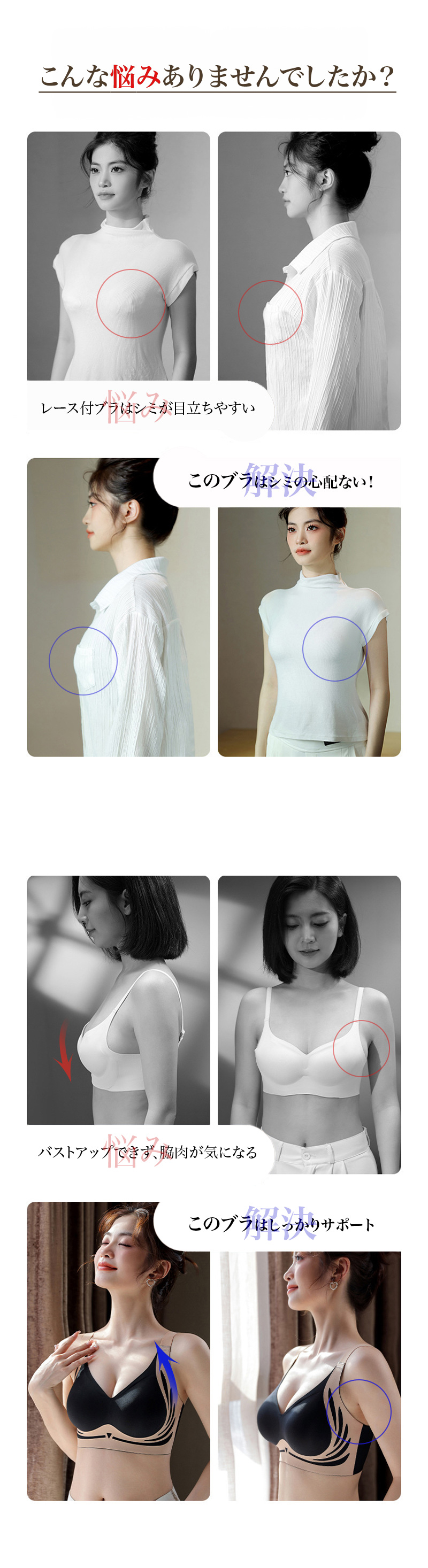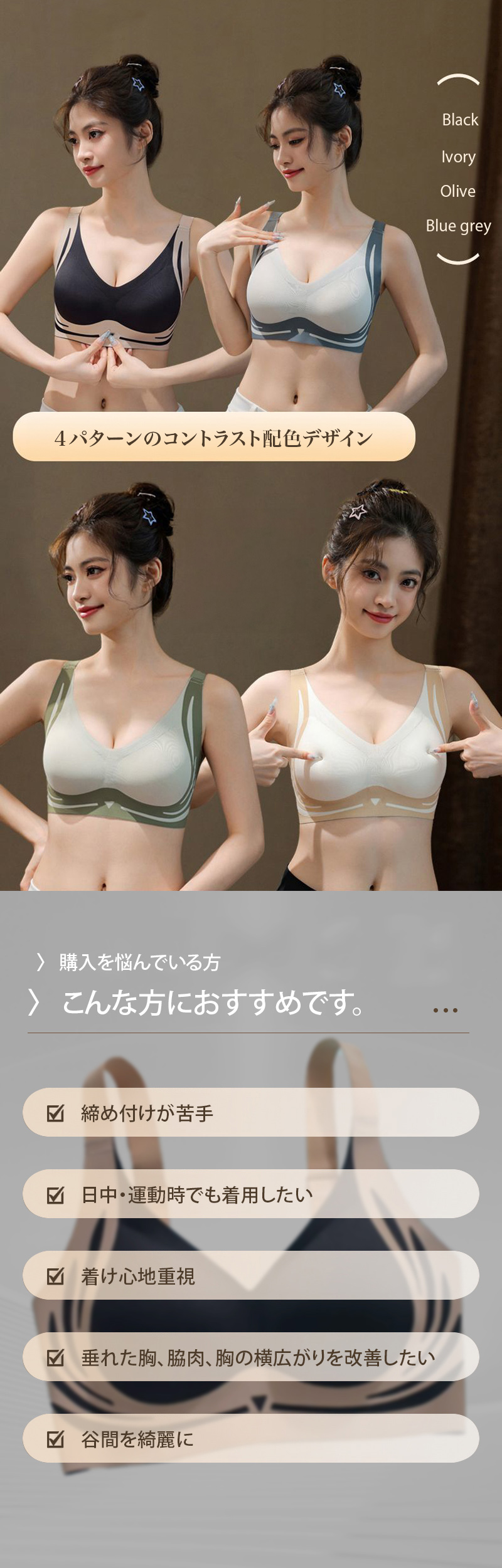 伸びが良く、肌当たりの良い素材のブラ! 柔らかくて握っても変形しにくいブラ! 脇高設計で背中と脇下の脂肪をスッキリ! 楽ブラ!
