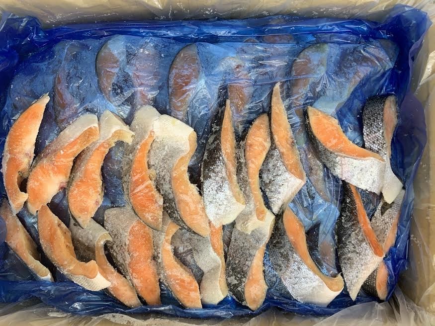 当商品はスーパーや弁当、ホテルバイキングなどの業務用として取り扱っています。 訳アリの理由は、通常生産しているトラウト切身の製品を作る際に重量が満たなかったり、端の部分を製品にしています。加工は国内製造です。お弁当やバイキングなどの業務用に適しています。